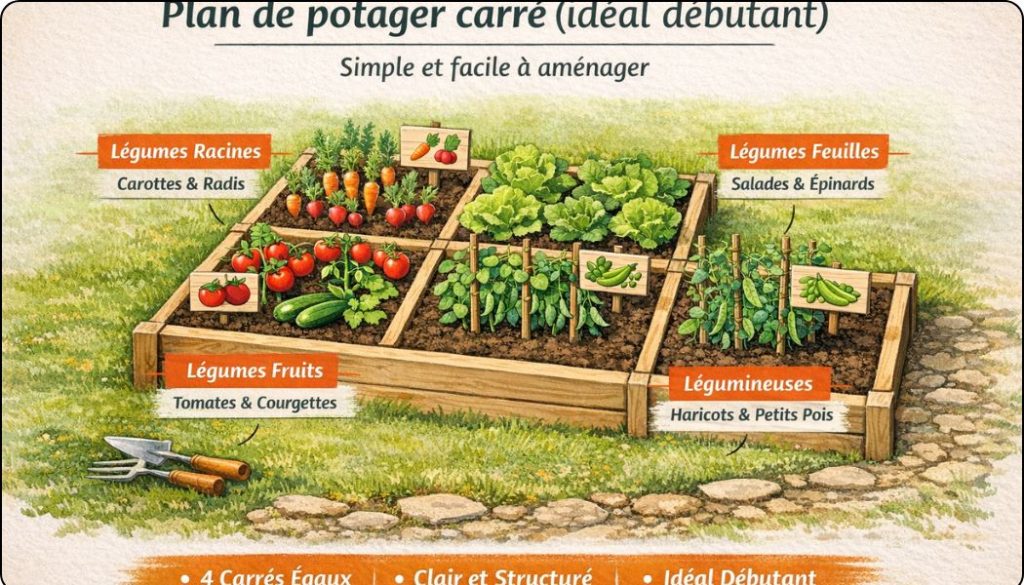 L’idée est de garder un potager simple, équilibré et adapté à ton niveau.
