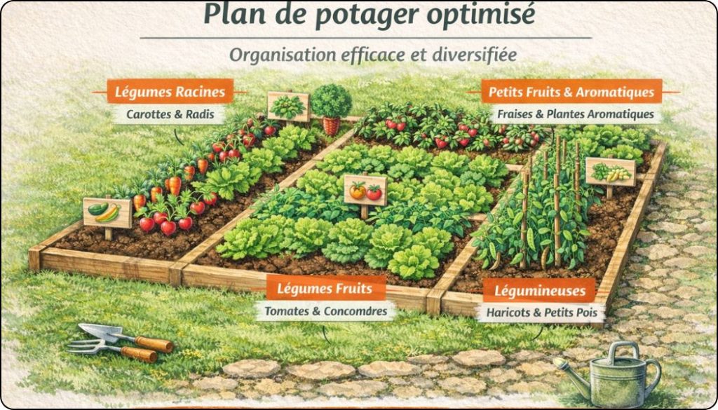 Un plan de potager permet donc de garder une logique simple, claire et efficace dès le départ.