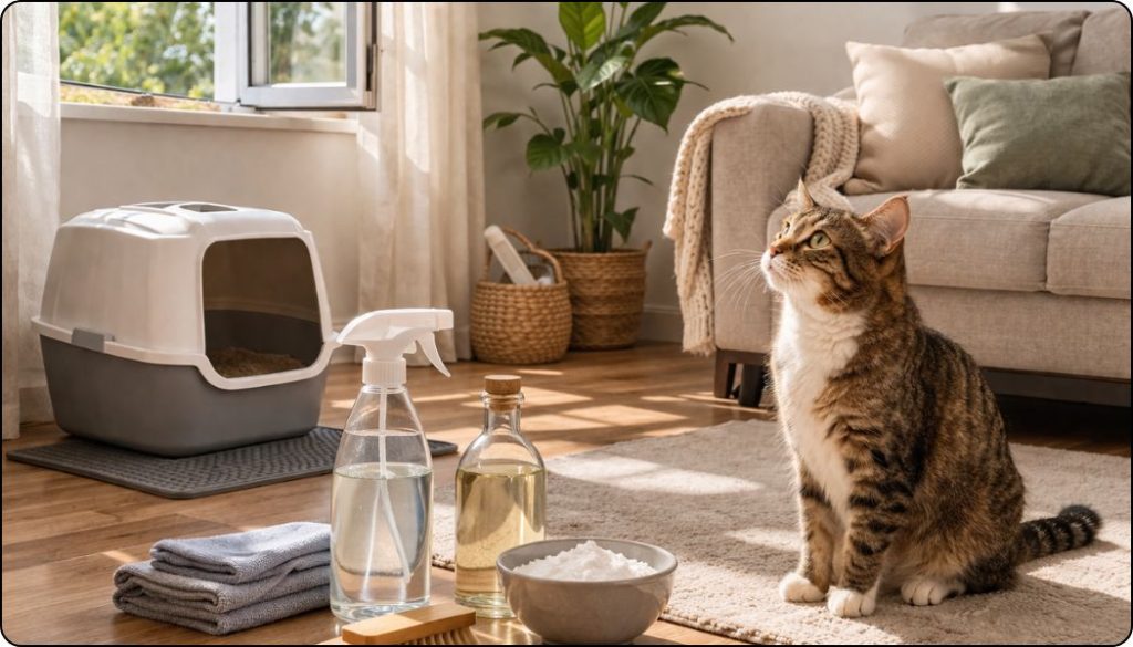 👉 L’odeur ne vient pas du chat… mais de ce qu’il laisse derrière lui.