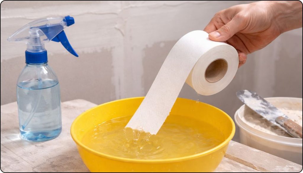 L’une des raisons principales est d’éviter les bulles d’air. Lorsque la bande est posée sur l’enduit, elle peut parfois mal adhérer et emprisonner de l’air. Cela crée des cloques visibles après séchage. En humidifiant légèrement la bande, elle devient plus souple et s’intègre plus facilement dans l’enduit. Cela peut aider à limiter la formation de bulles, surtout pour les débutants.