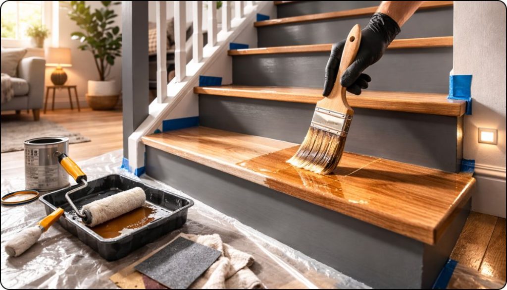 Le choix dépend donc de ton objectif : si tu veux un résultat simple et rapide, une peinture résistante peut suffire. Mais pour un escalier très utilisé, ajouter une protection permet d’obtenir un résultat plus durable et plus professionnel.
