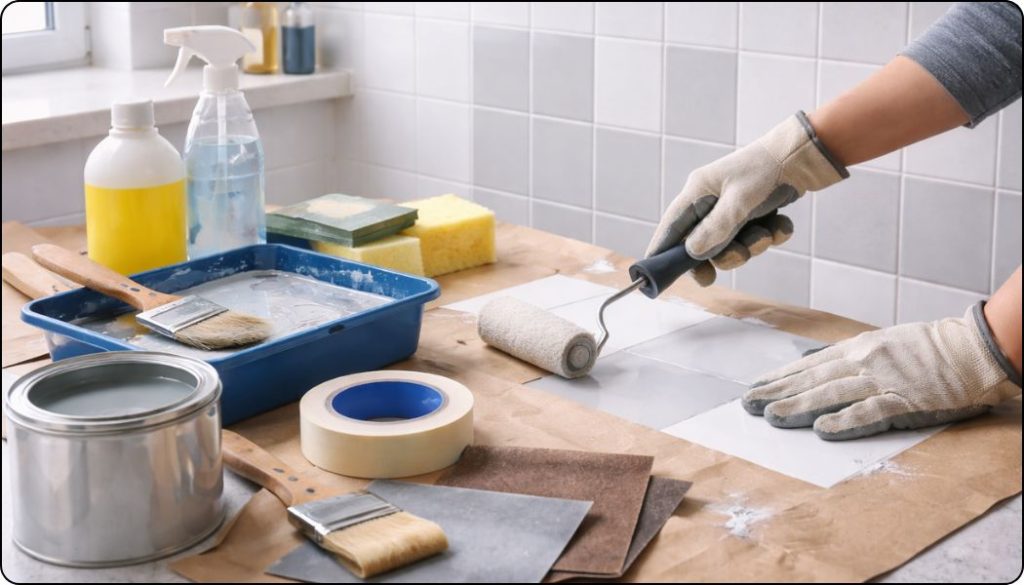 💡 Conseil : pour une salle de bain ou une cuisine, privilégiez une peinture spéciale carrelage résistante à l’humidité ou une résine pour un résultat durable.